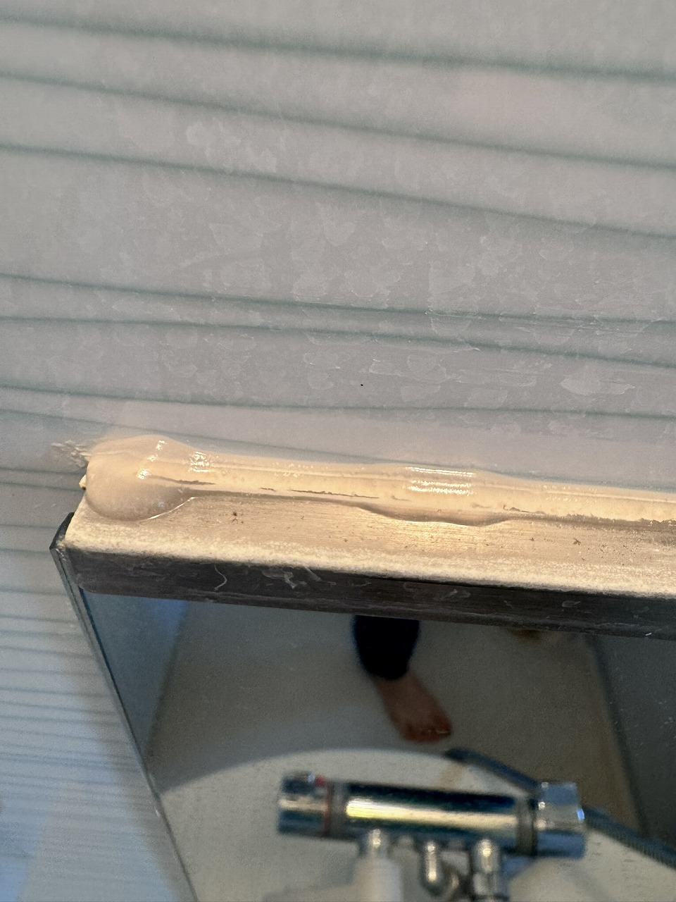 今回は初めてだったので、1時間ほど置いて(もちろん窓を開けて、換気扇も回した状態で)シャワーで流してみたところ……。