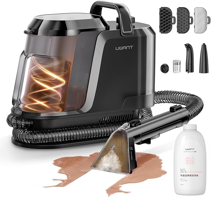 uwantカーペットクリーナーは、高温スチーム、お湯洗浄、強力吸引が一台にまとまった「本気で洗うタイプ」の布用クリーナー。