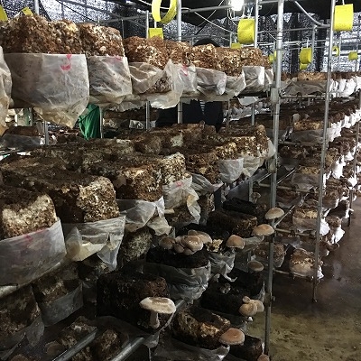 ハーブの温室の隣に椎茸が育てられている温室があります。