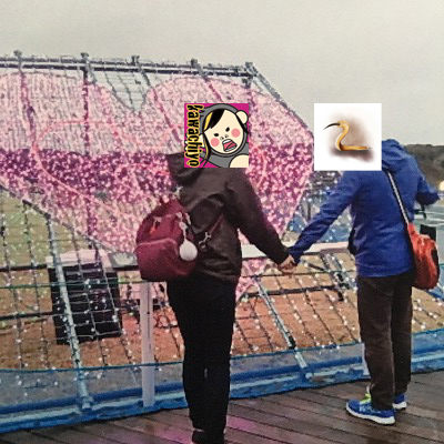 我々夫婦で手をつないで、装置に触れた瞬間に「テゥンテゥンテゥン~」と溶けた魚の様な音がして、イルミネーションが消え、しかも写真が昭和臭い風合いに仕上がるという奇跡が起こりましたが、まあ……カップルだったら笑えるのかと(苦笑)