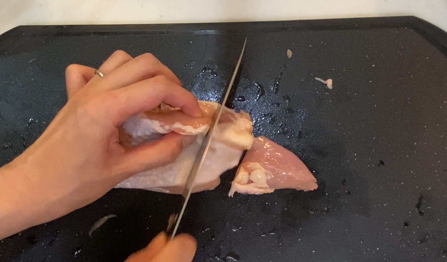 ▶鶏もも肉は一口大に切る