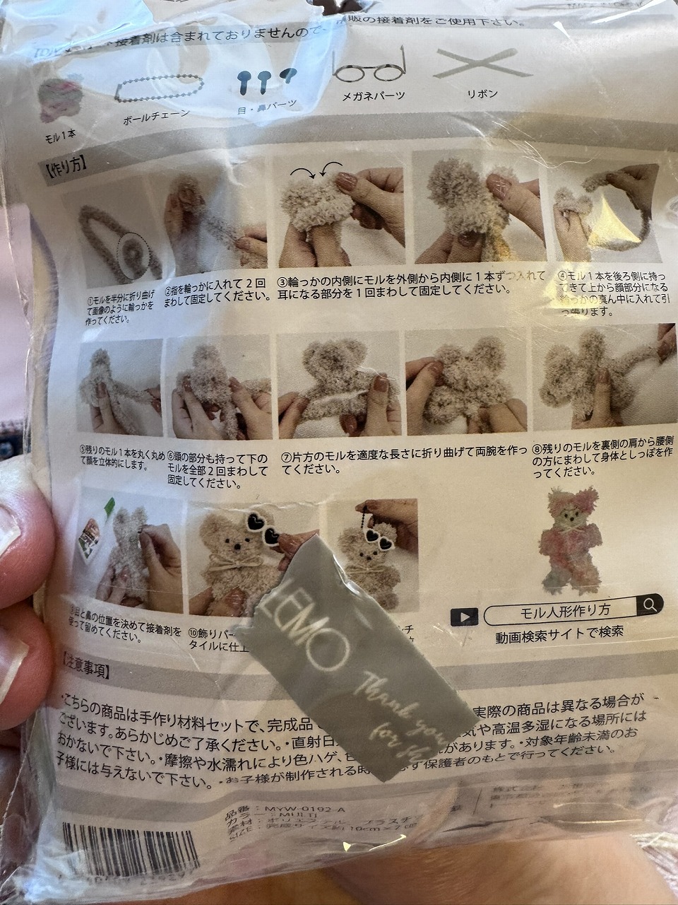 モール人形キットはセリアとかでも売っているようなのですが、今回はたまたま雑貨やで見つけた500円位の MO:RU DIY KITS SET(モール人形キット)を購入。