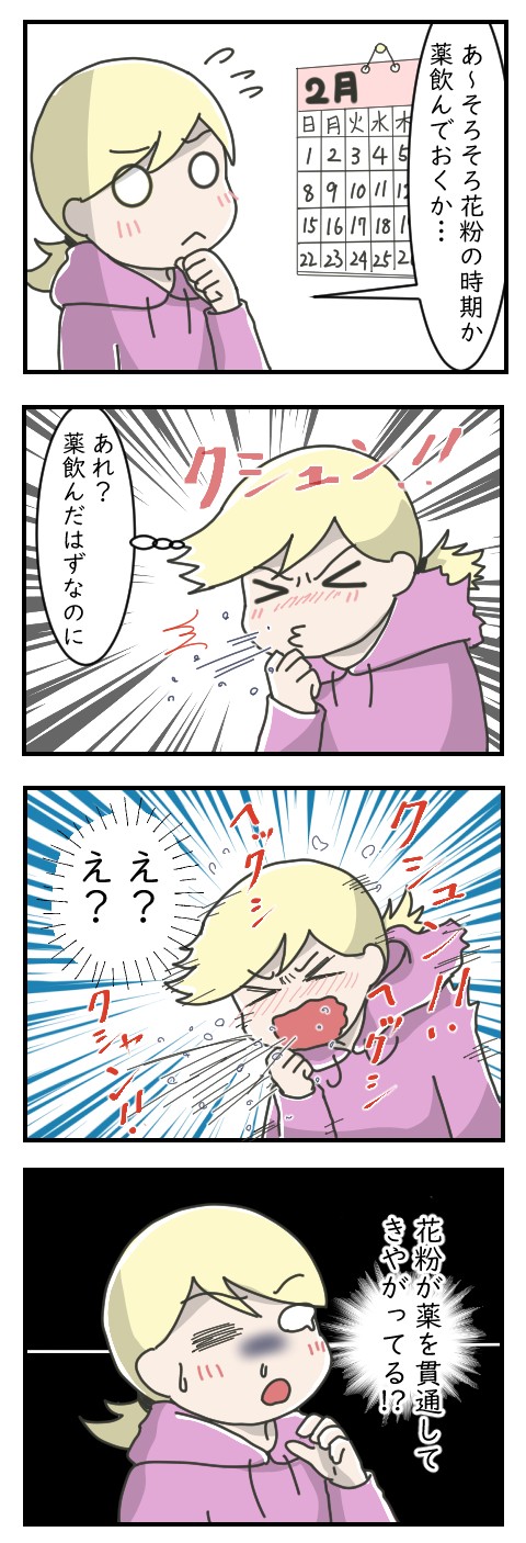 この年の花粉は……薬を貫通指摘やがったんですよ……。