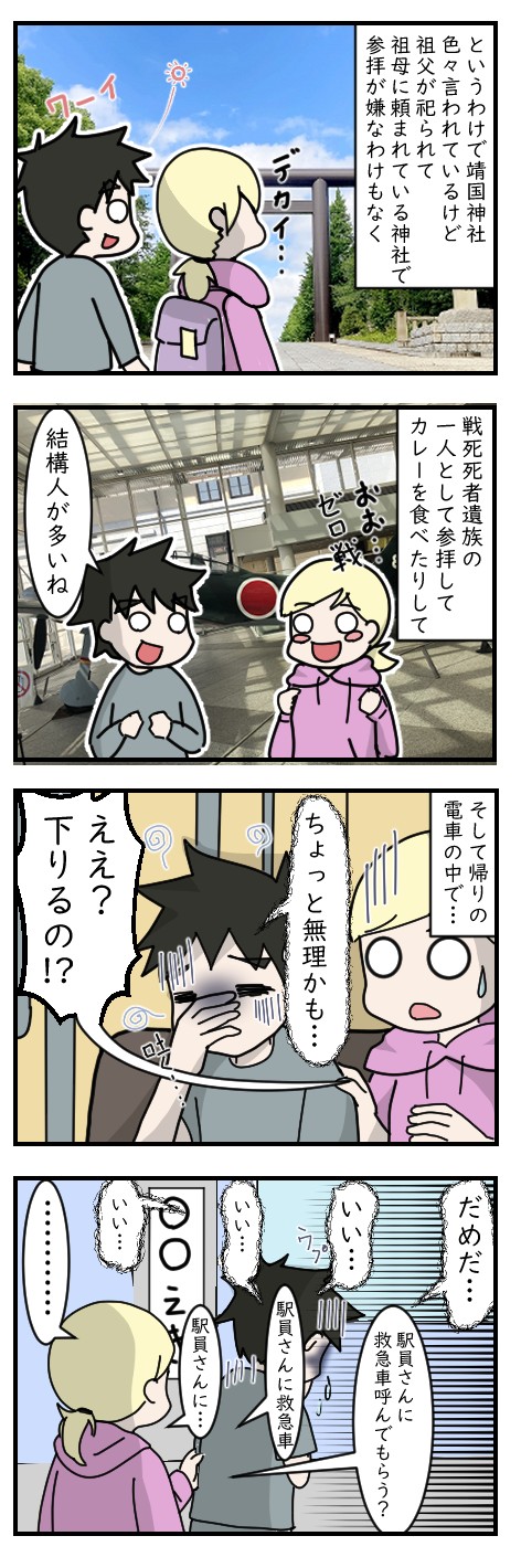 靖国神社へ参拝した帰りに旦那が突然の体調不良で大混乱した日